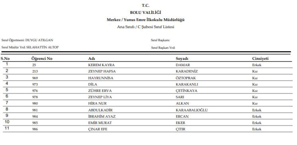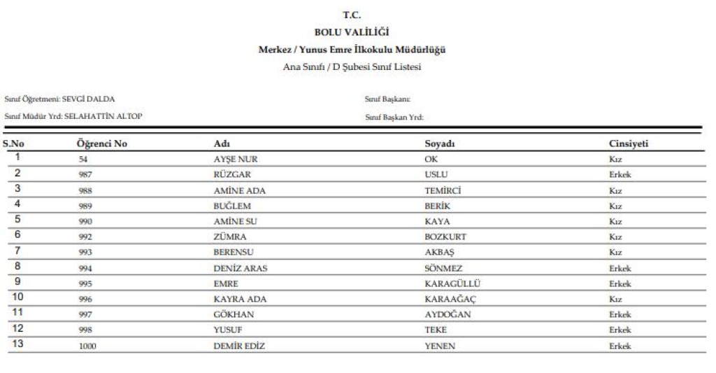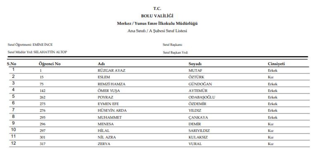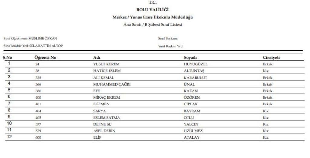 ANASINIFI ŞUBE LİSTELERİ YAYINLANDI!!!!